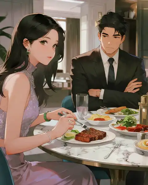 Cuối cùng li /ếm môi, ánh mắt thèm thuồng nhìn miếng bít tết trước mặt anh ta.