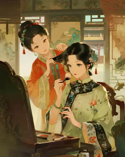 Ta gắng kìm nén tâm tư, quay sang nhìn nữ chính đang chải tóc cho mình.