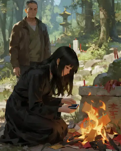 "Tiểu Mãn! Con đi/ên rồi?" Bố tôi gi/ật phắt chiếc điện thoại giấy đi, "Đốt vàng mã phải có tâm! Con đ/ốt cái điện thoại giả này là ý gì?"
