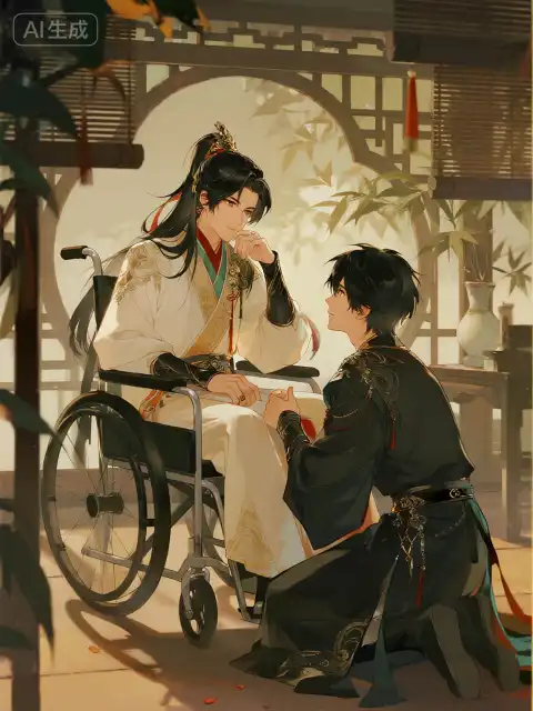 Ta xoa xoa đầu hắn, vỗ nhẹ vào đôi chân đang ngồi trên xe lăn: