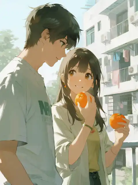 Cô ấy như thường lệ, lại lấy từ trong túi ra một quả cam tròn vo đưa cho tôi, mắt cong cong, nụ cười hiền lành ngoan ngoãn.