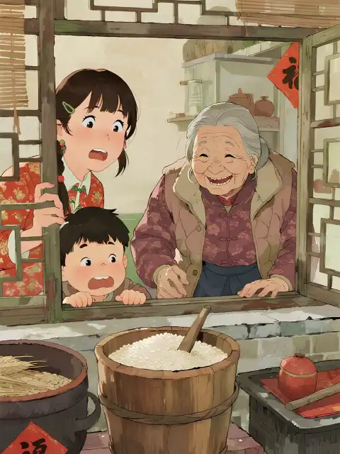 "Hai đứa nhóc ngốc nghếch kia, mau chui ngay vào vại gạo trốn đi!"
