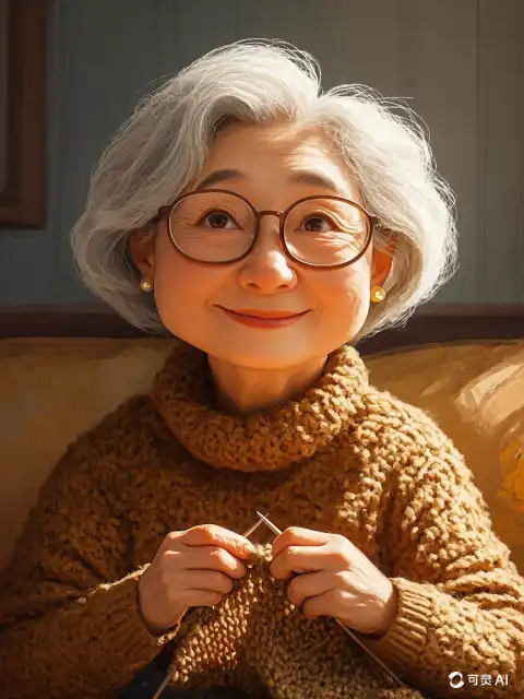 Bà lão nhỏ khom lưng, tươi cười nhìn người khác đ/á/nh cờ.