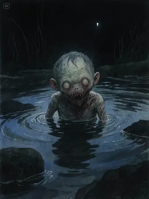 ChươngThằng ngốc trong làng bị ném xuống sông. Sau đó, trên bờ xuất hiện mấy vết dấu chân khổng lồ. Nhà sư du hành trông thấy dấu chân, mặt mày kinh hãi. Ông ta nói Hà Đồng (thủy quái) giáng trần, không ch*t không ngừng.