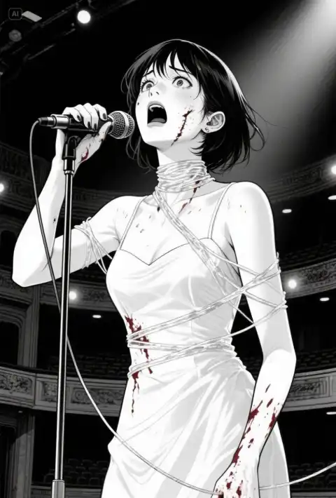 ChươngKhi mới vào nhà hát, tiền bối bảo tôi trong này có một bài hát không được hát, hát lên sẽ bị ch/ặt đầu. Không được hát thì tôi dùng nhạc cụ diễn tấu, phát hiện giai điệu đặc biệt hay, nếu hát ra nhất định sẽ nổi tiếng. Nhưng lời cảnh báo của tiền bối vẫn còn in đậm. Cuối cùng có một ngày tôi không nhịn được, tự ý đổi bài hát trên sân khấu, cất tiếng hát bài ca đ/au đáu trong lòng này.