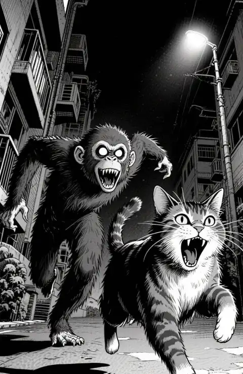 ChươngĐêm khuya, trong nhóm chat của khu dân cư, có người đăng một đoạn video kinh dị. Một con khỉ hoang có khuôn mặt người đang ăn thịt sống con mèo hoang trong khu. Tiếng mèo kêu thảm thiết liên hồi khiến dân yêu mèo trong nhóm phẫn nộ, đòi xuống đ/á/nh ch*t con khỉ. Nhưng có một hàng xóm lại cảnh báo: "Đừng xuống! Đó là con khỉ mặt người, nó thích ăn óc người lắm!"